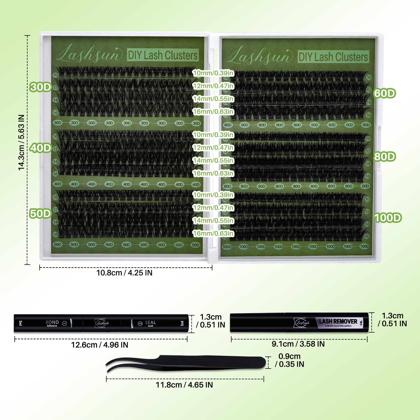 💫LASHSUN 456PCS D Curl Cluster Lashes Kit with Bond & Seal, Remover & Tweezers