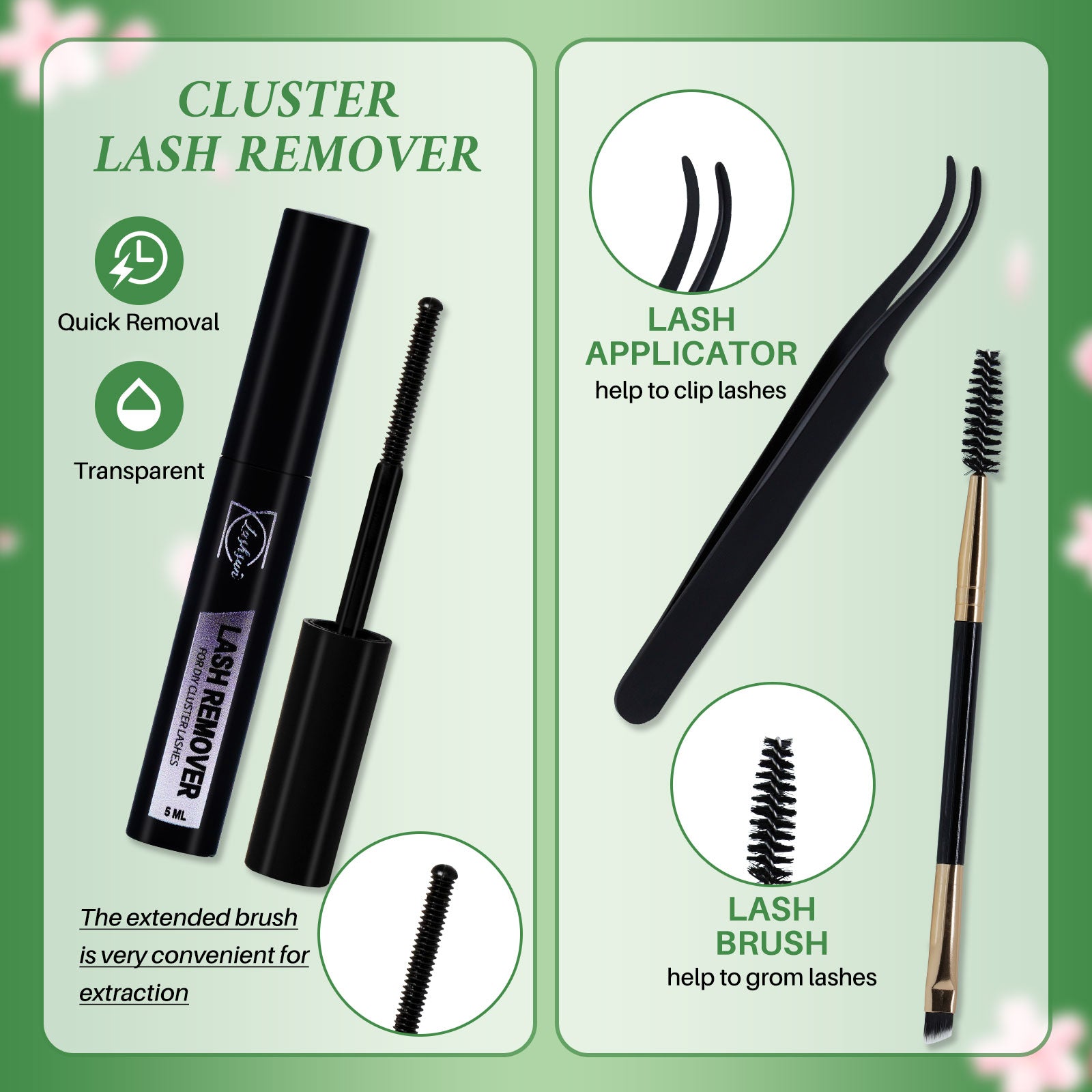 ✨ What’s Inside: ✔️ 280 Lash Clusters – lightweight, soft, and flexible for natural or glam looks ✔️ 2 Lash Glues – strong, long-lasting hold for all-day wear ✔️ 2 Removers – gentle on skin, easy to remove without damage ✔️ 2 Tweezers – precision tools for accurate and beginner-friendly application ✔️ 2 Brushes – perfect for separating, blending & shaping your lash style