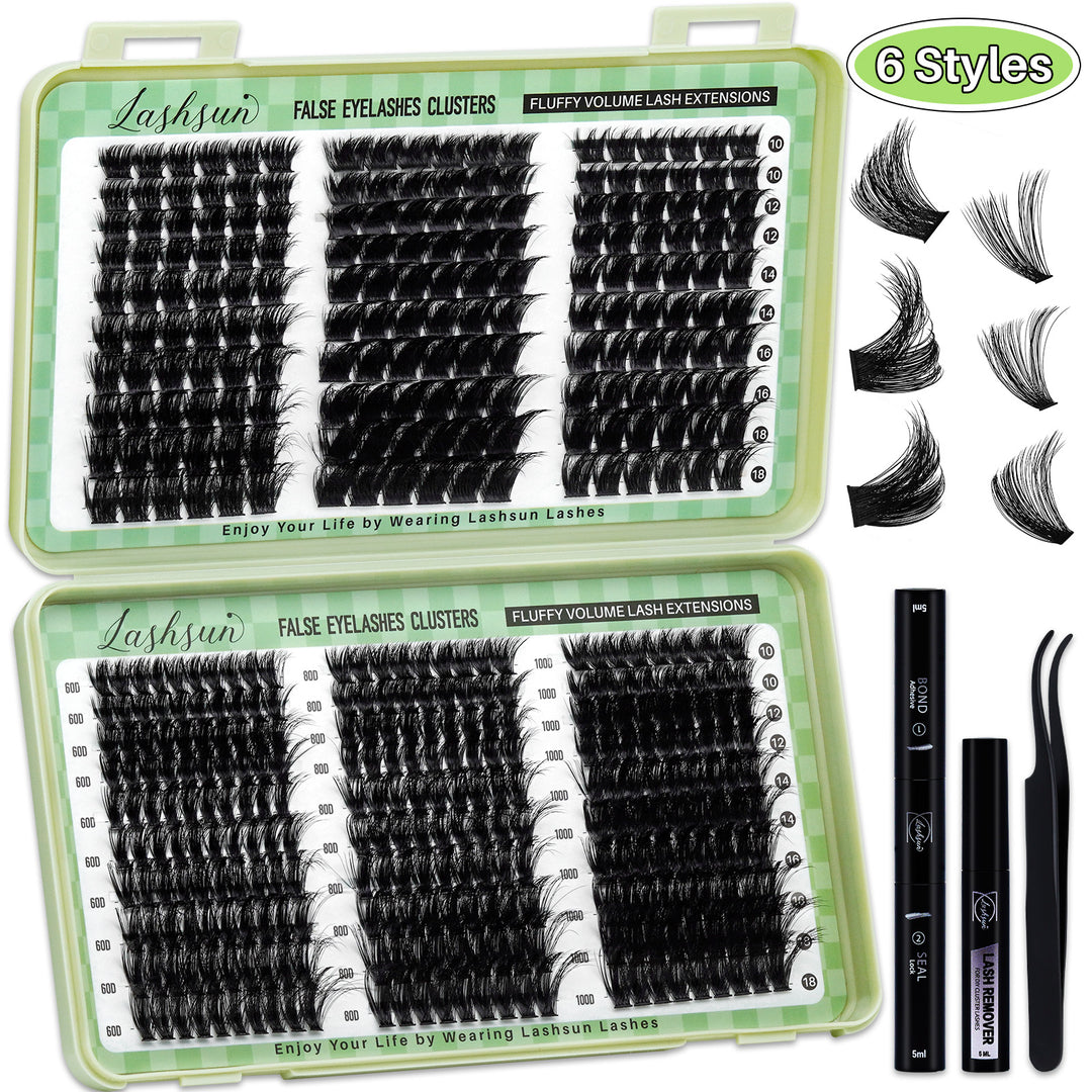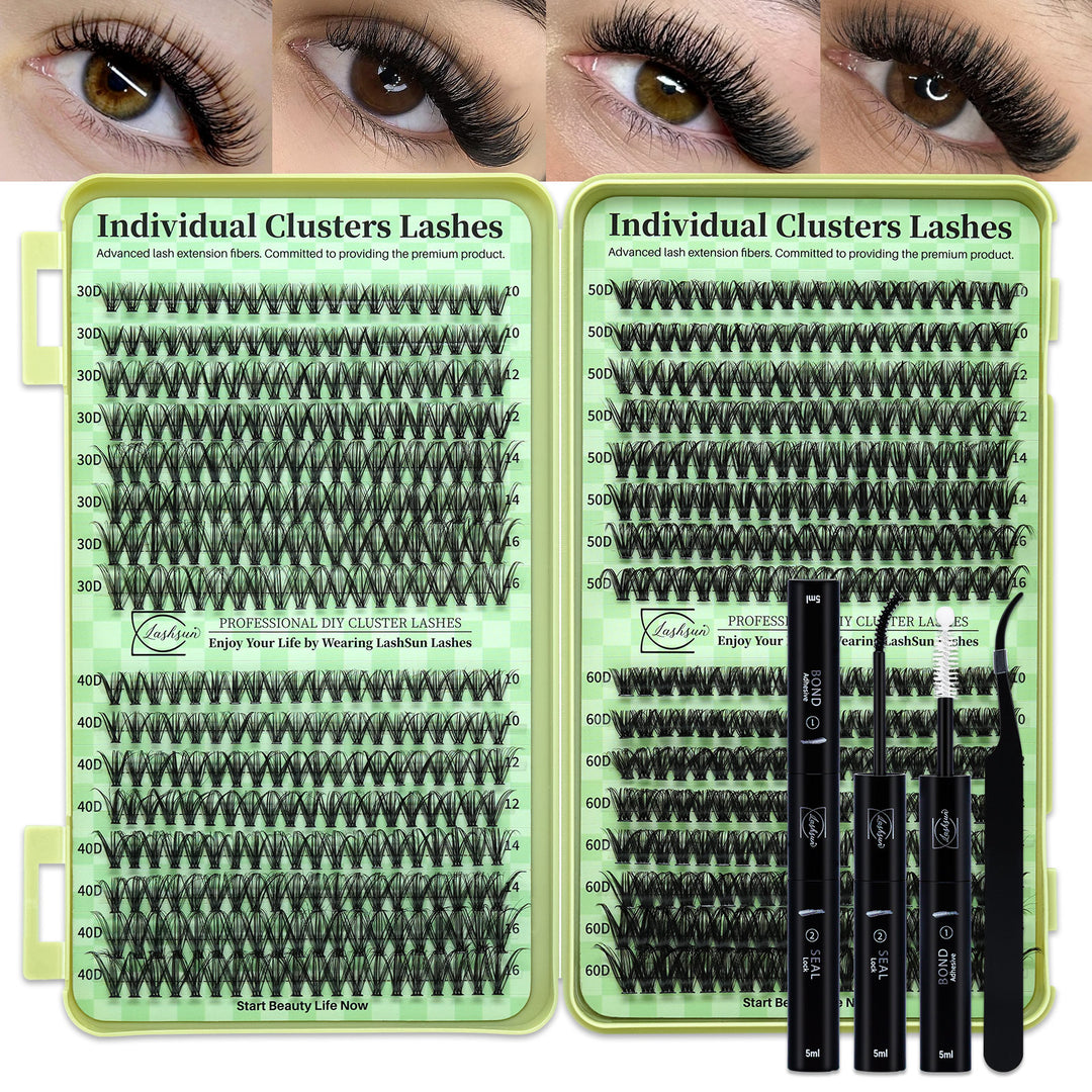💫LASHSUN 456PCS D Curl Cluster Lashes Kit with Bond & Seal, Remover & Tweezers