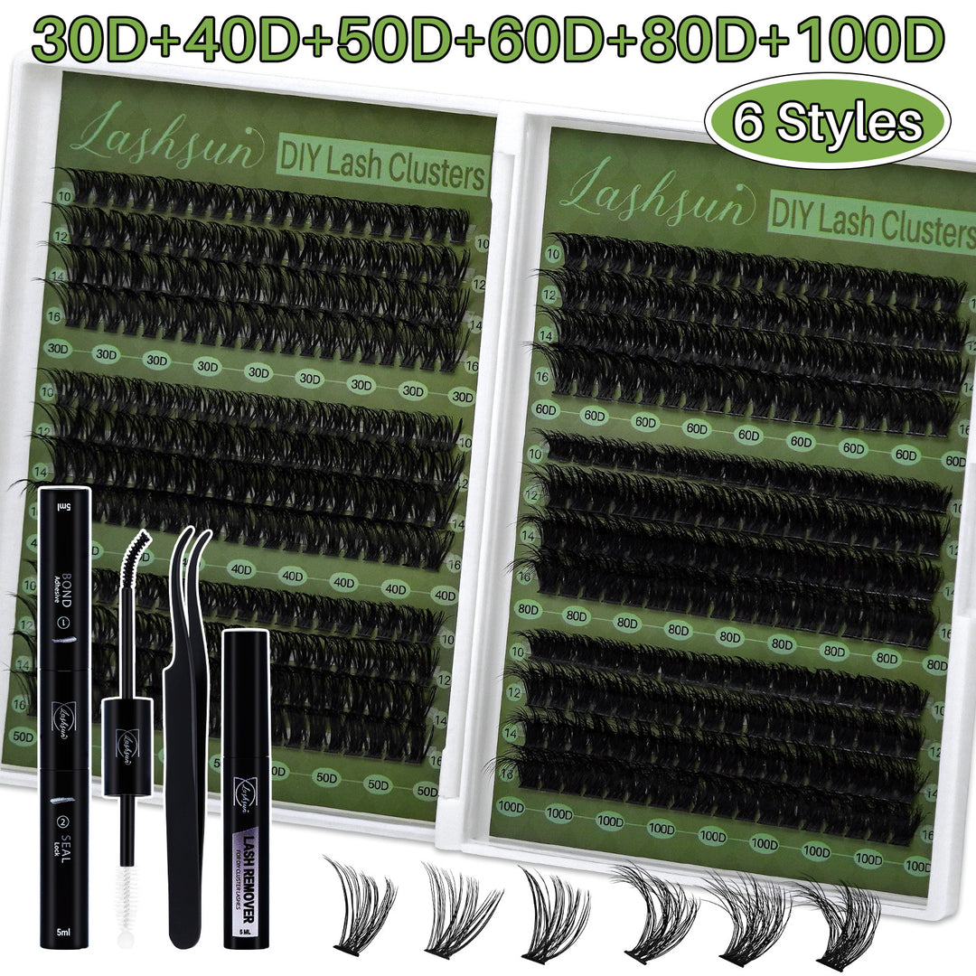 💫LASHSUN Mixed Length D Curl Lash Clusters Kit with Bond & Seal