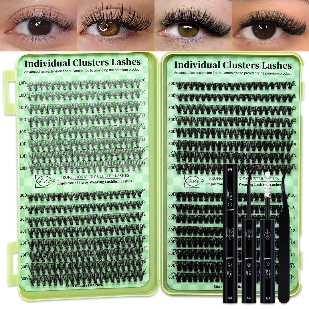 💫LASHSUN 280PCS D Curl Cluster Lashes Kit – 60D 80D 100D Volume with Bond & Seal
