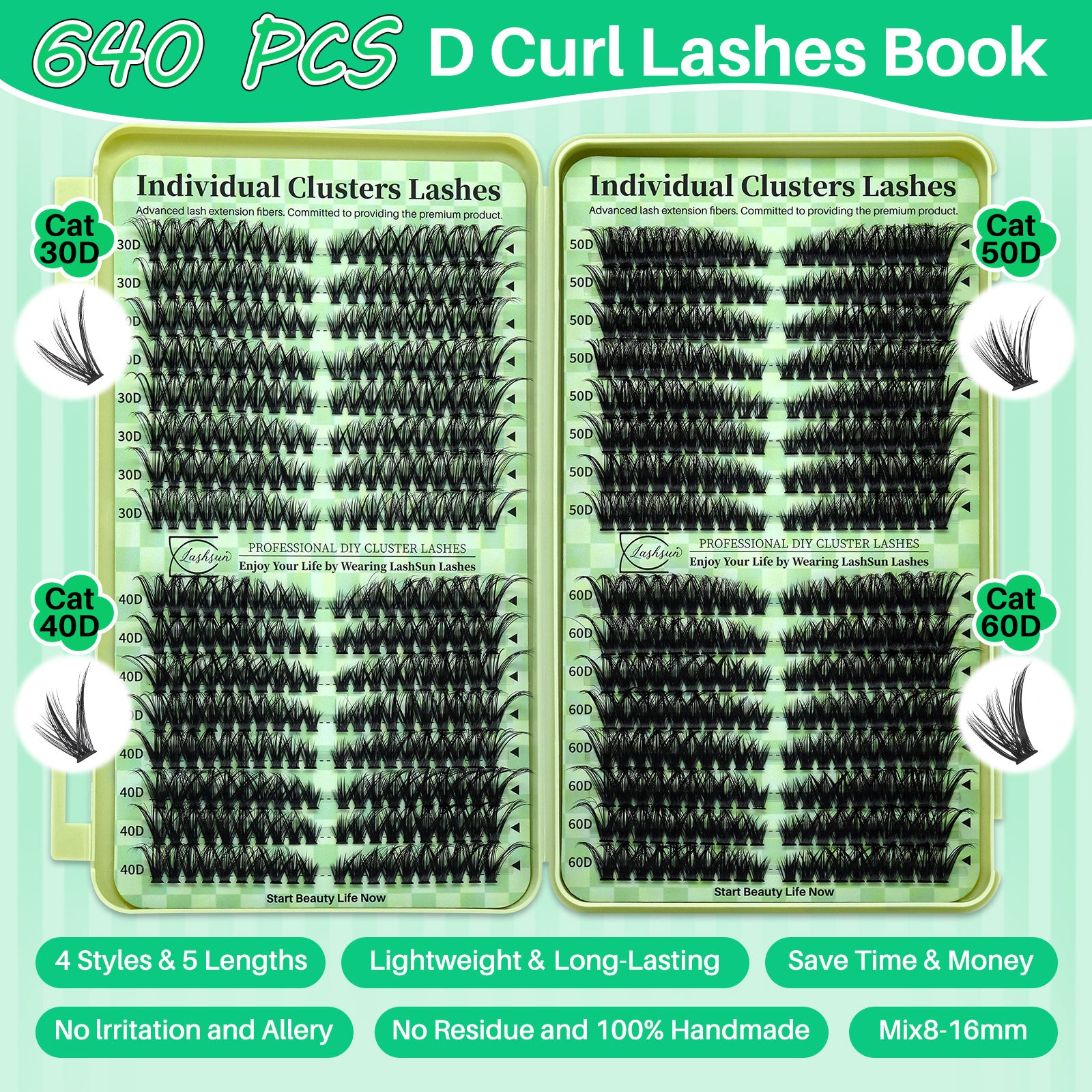 🎀LASHSUN 640PCS Cat Lash Book Kit D Curl with Bond & Seal