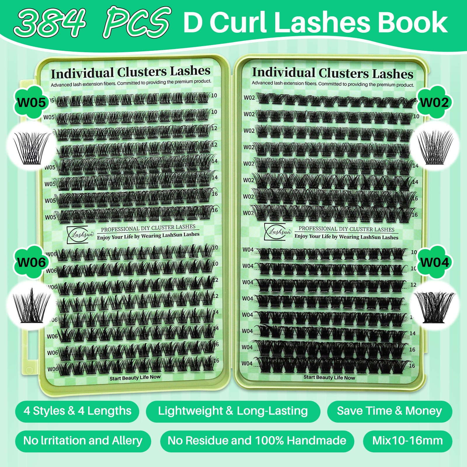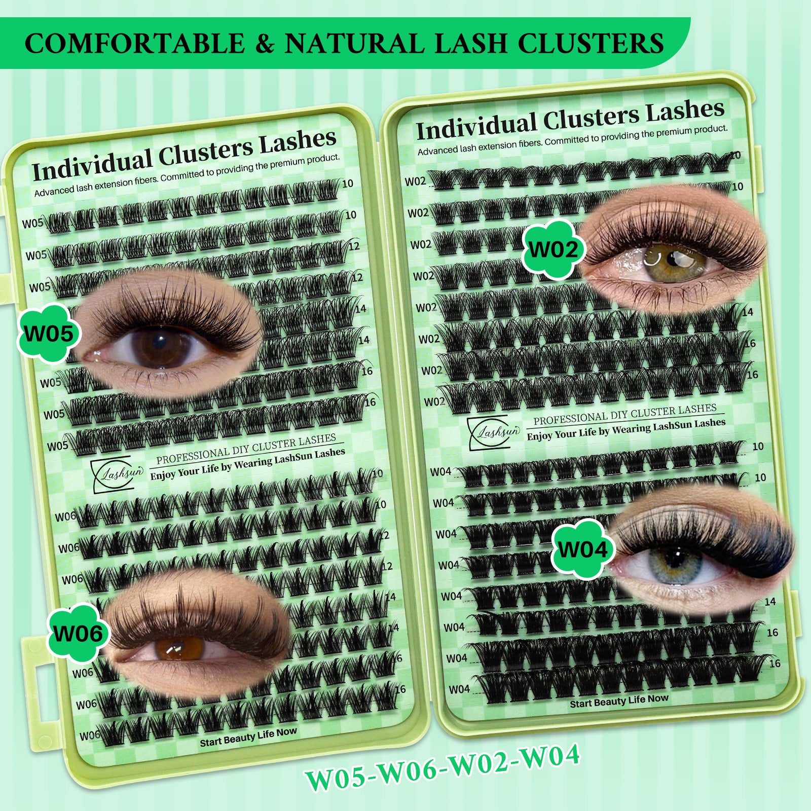 🎀LASHSUN Wispy Lash Clusters Kit W02-W06 with Bond & Seal & Tweezers